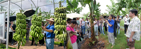 通过实地参观香蕉栽培区和和资源保存区,观摩290多份不同的香蕉种质资源和多年来培育的香蕉新品种,大家近距离了解香蕉生长特性及栽培管理技术,让学生、农户和农业爱好者均表示收获丰富,实践认知显著增强。